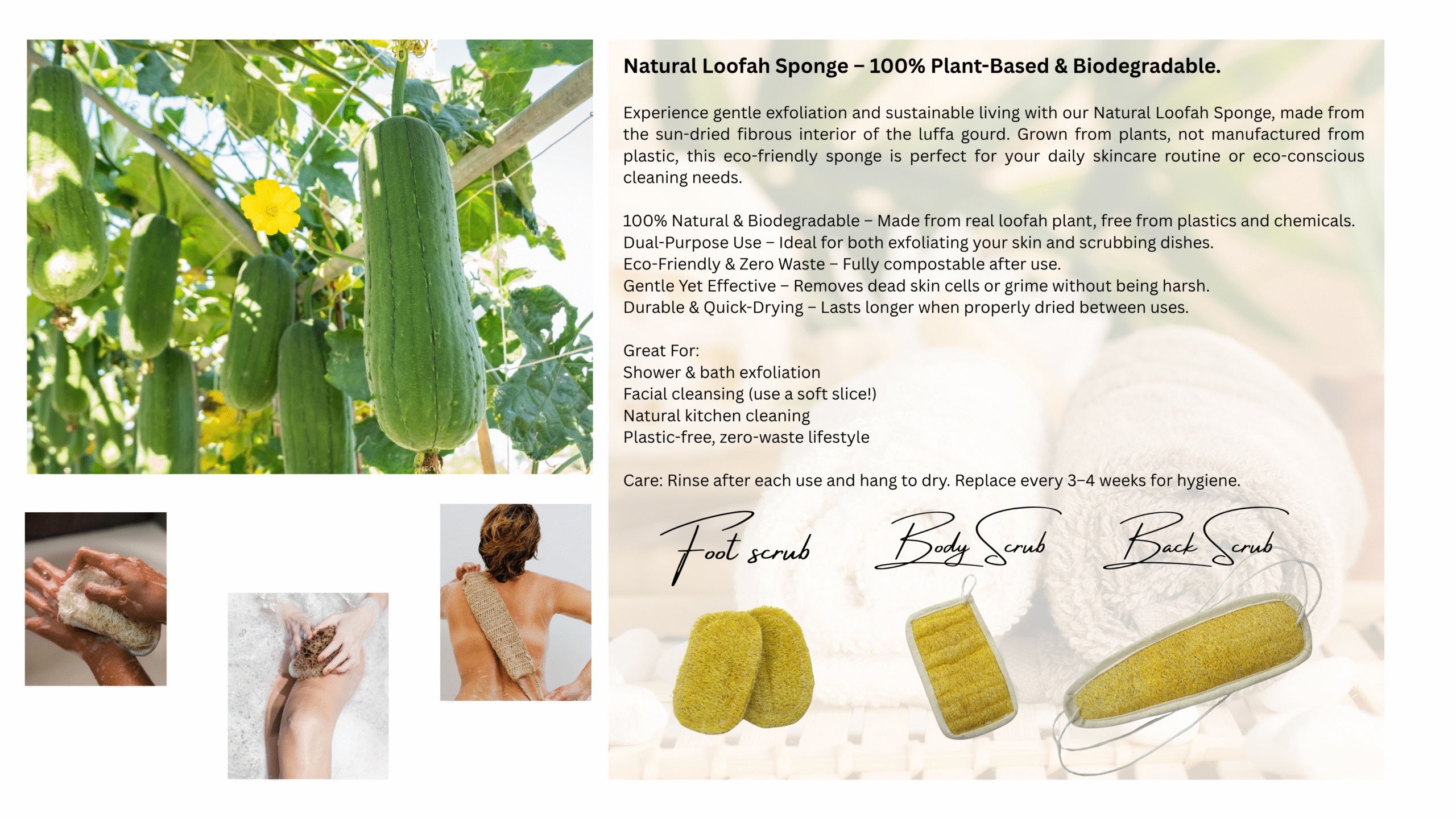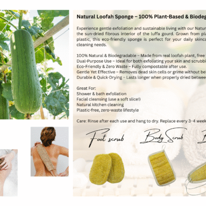 100% Natural & Biodegradable – Made from real loofah plant, free from plastics and chemicals.