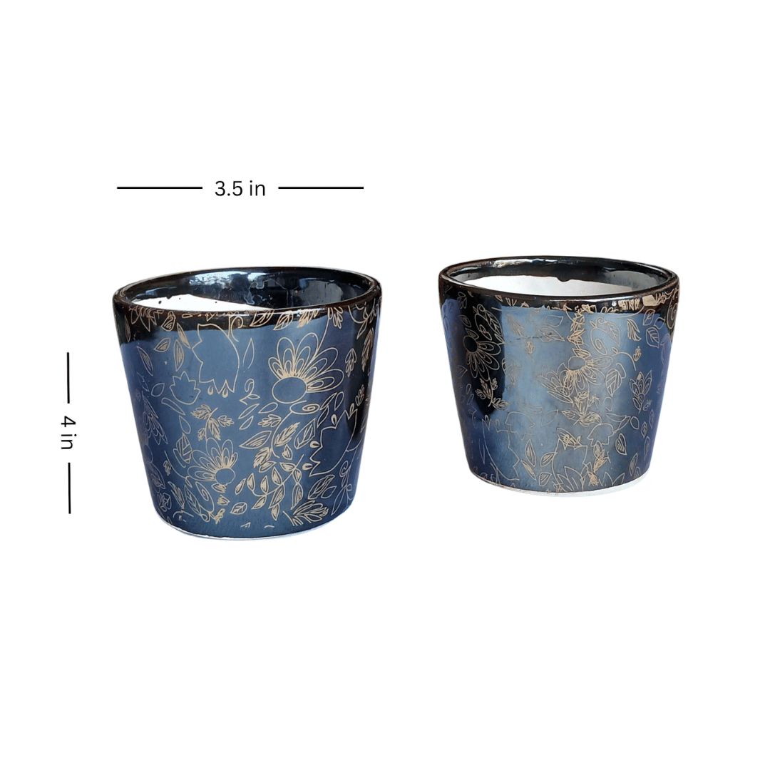 Elevate your interiors with this elegant black ceramic planter adorned with a delicate floral design. Its glossy finish and artistic pattern bring a touch of sophistication and charm to any setting. Ideal for showcasing indoor plants, succulents, or decorative arrangements, it blends functionality with timeless beauty.