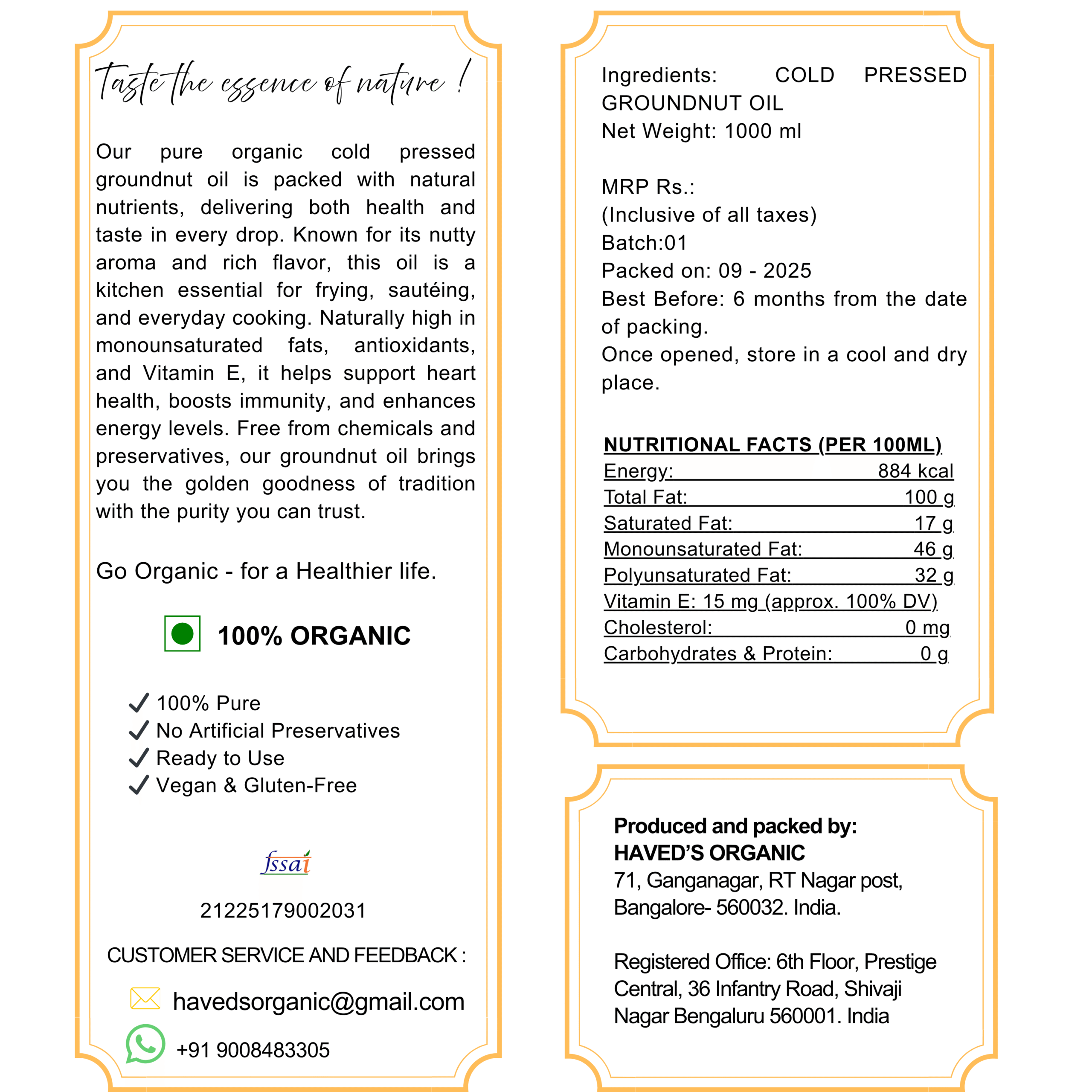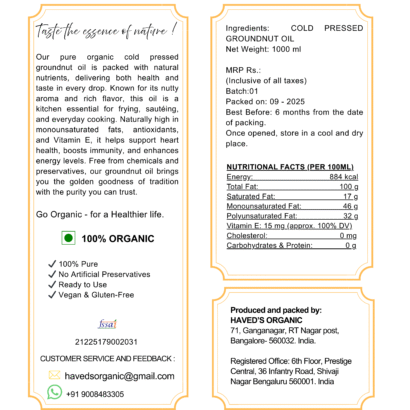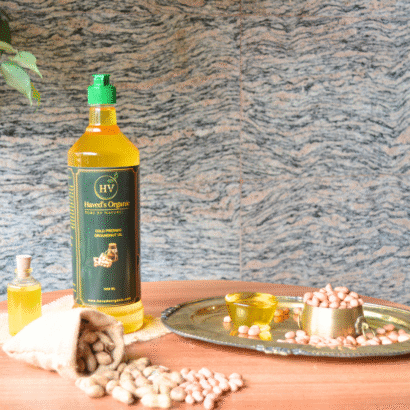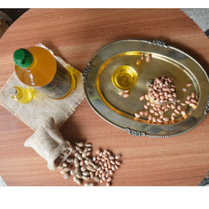 Our Cold-Pressed Groundnut Oil is extracted from high-quality peanuts using traditional wooden chekku (or rotary press) methods, without heat or chemicals. This gentle process preserves the oil’s natural nutrients, flavor, and aroma, making it a healthier alternative to refined oils.