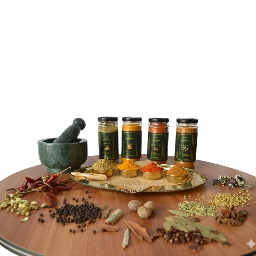 Bring authentic flavor and aroma to your kitchen with our Premium Spice Collection, crafted from the finest, hand-selected ingredients. Each spice is naturally processed, preserving its rich color, freshness, and essential oils — ensuring every dish bursts with traditional taste and wholesome goodness.