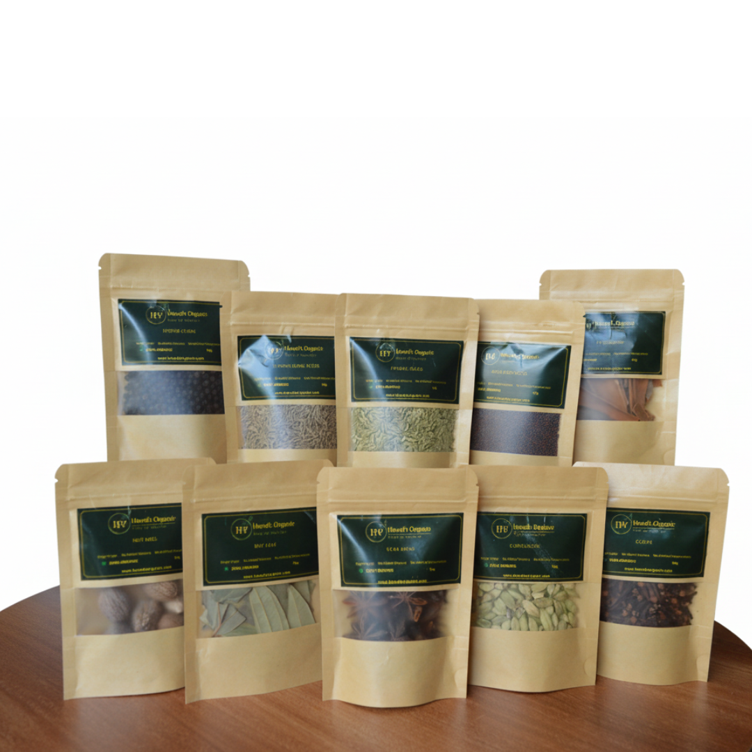 Bring authentic aroma, flavor, and nutrition to your kitchen with our Premium Whole Spices Collection, crafted from the finest, handpicked spices. Naturally dried and preserved, these spices retain their essential oils, richness, and health benefits, making every dish flavorful and wholesome.